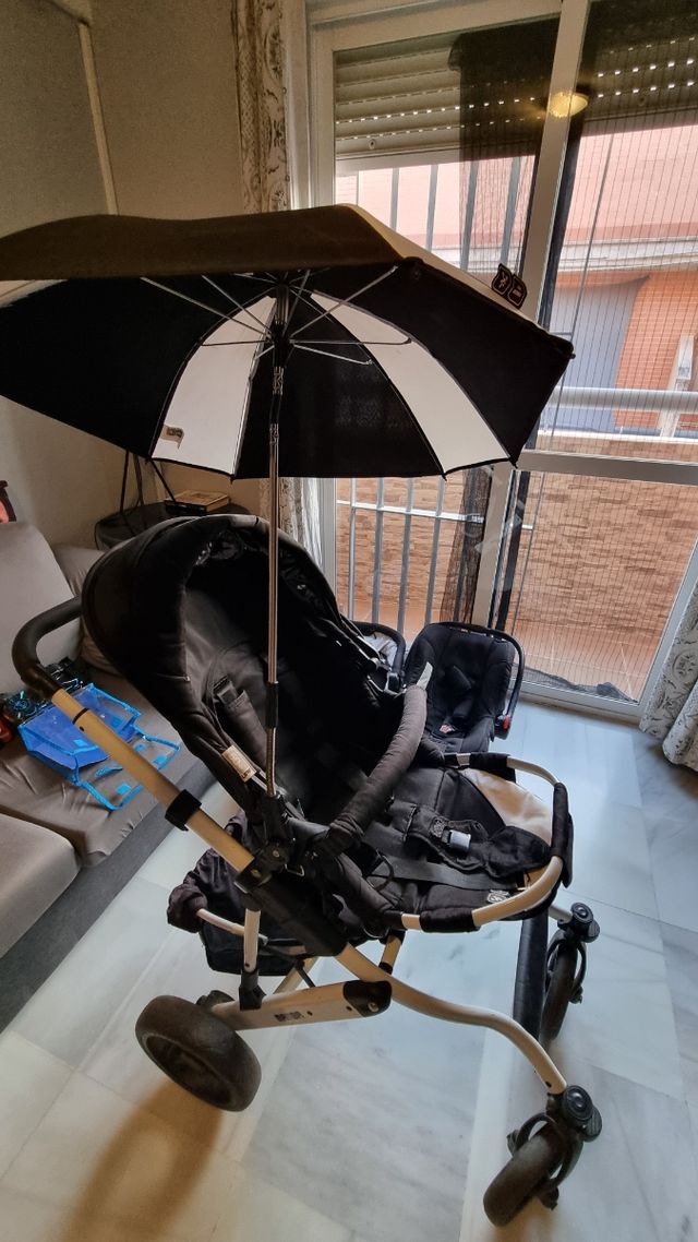 Detalles del productoPack completísimo que incluye: capazo con colchón 🛏️, silla de paseo 🚼, silla de coche 🚗, bolso a juego 🎒, paraguas con protección solar 🌞 y funda de lluvia ☔.