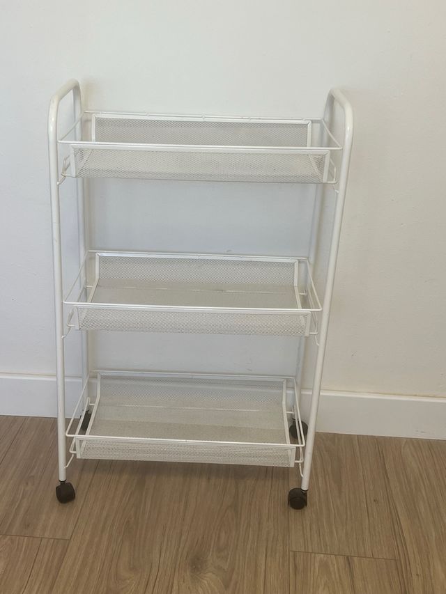 carrito con ruedas de metal blanco