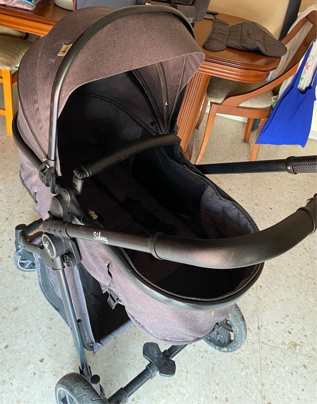 Tres posiciones: capazo, maxicosi y sillita de paseo. Maxicosi sirve como sillita de coche. Muy poco uso (carro de segunda residencia), las ruedas funcionan perfectamente. Fácil plegamiento, con solo una mano.