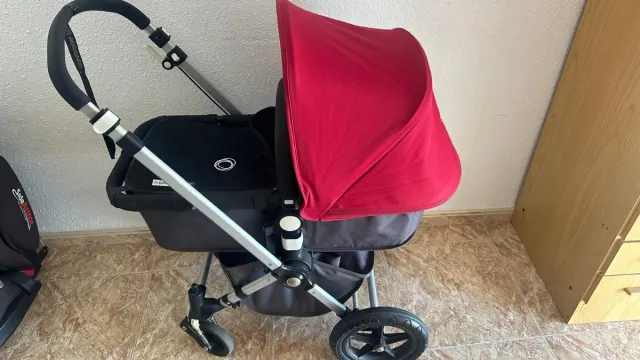 Detalles del productoCarro de bebé Bugaboo Camaleón en color negro y capota roja.