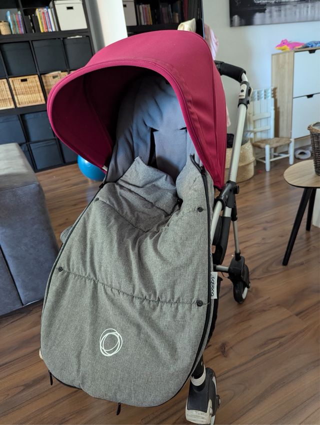 Detalles del productoCarro Bugaboo en color gris y capota en color burdeos.