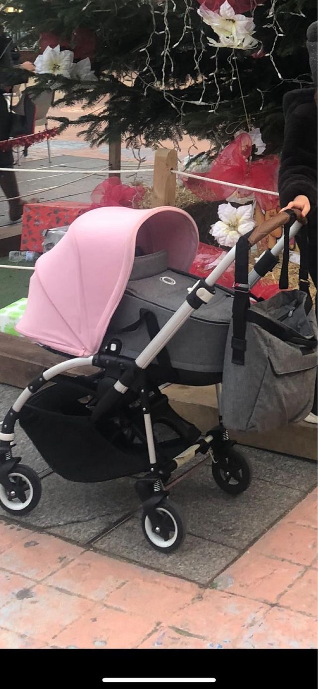 carro bugaboo bee 5 2 piezas gris. tiene 2 capuchas una gris y la otra rosa de la marca bugaboo y tambien el saco gris de la misma marca.