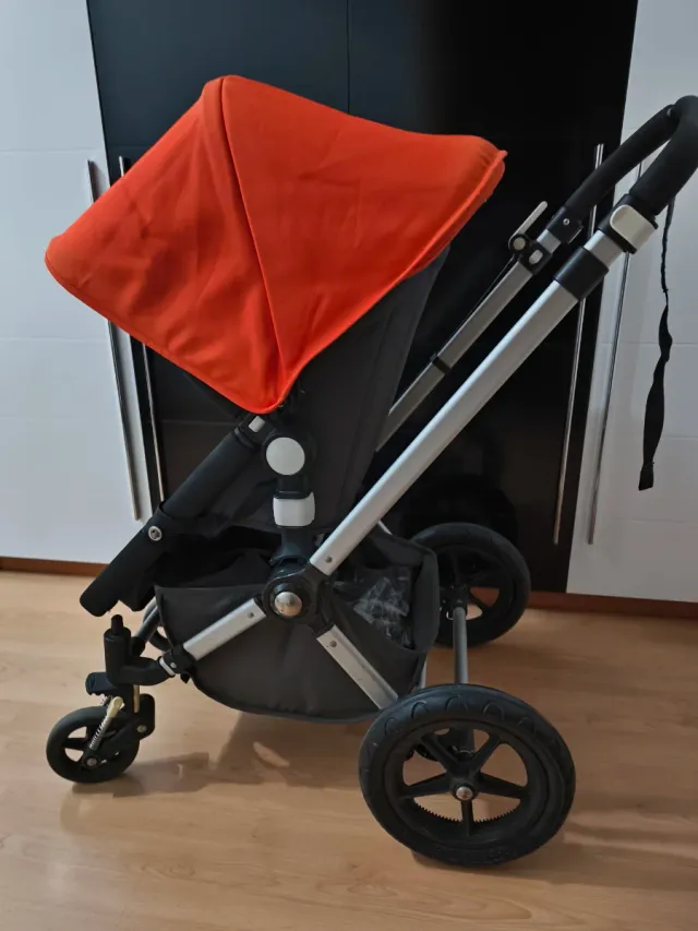 Detalles del productoCarro Bugaboo Camaleon completo, capazo más silla en color gris con capota naranja.