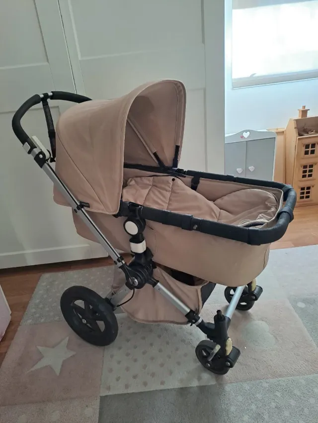 Detalles del productoCarro de bebé Bugaboo en color beige. Ideal para paseos cómodos, con capazo y silla, facil de guardar.