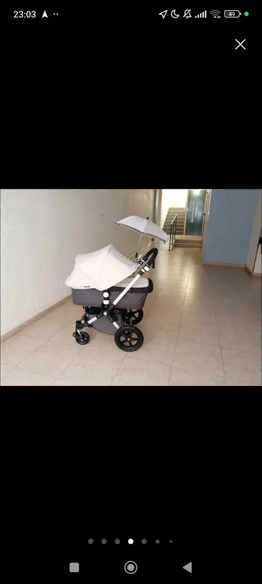 Carro Bugaboo Camaleón 3 en color marfil. - Chasis negro. - Capazo. - Silla. - Capota. - Sombrilla.
