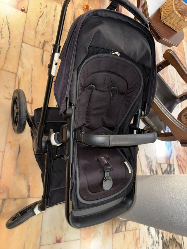 Carro Bugaboo Fox 5 en color negro. - Chasis negro. - Asiento reversible. - Capota extensible. - Ruedas todoterreno. -funda -capazo