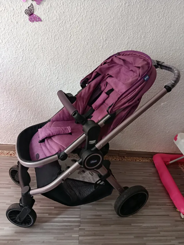 Detalles del productoCarro de bebé Chicco Best Friend en color morado, que incluye capazo y sillita.