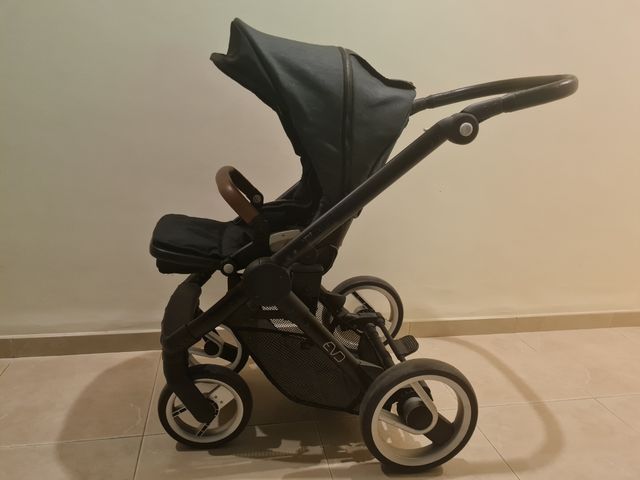Detalles del productoCarro de bebé marca Musty EVO en color vaquero y detalles en marrón. Se ha usado muy poco por tener otro carro principal. Solo el chasis ya me costó 310€ en El Corte Inglés; ya que la sillita se compraba por separado al existir varios calores de tapicería, la sillita sin el chasis me costó 220€ al ser tapizado de unidad limitada.