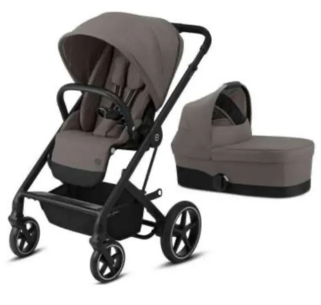 Detalles del productoConjunto de cochecito de bebé Cybex en color gris y negro, incluye silla y capazo.