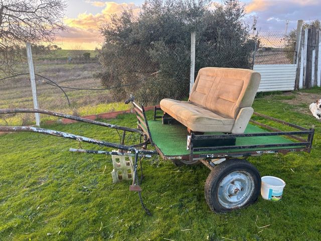 Detalles del productoCarro de campo con un asiento de coche instalado. Ideal para proyectos o uso rural.paseos, entrenamiento de bestias , ir por leña .