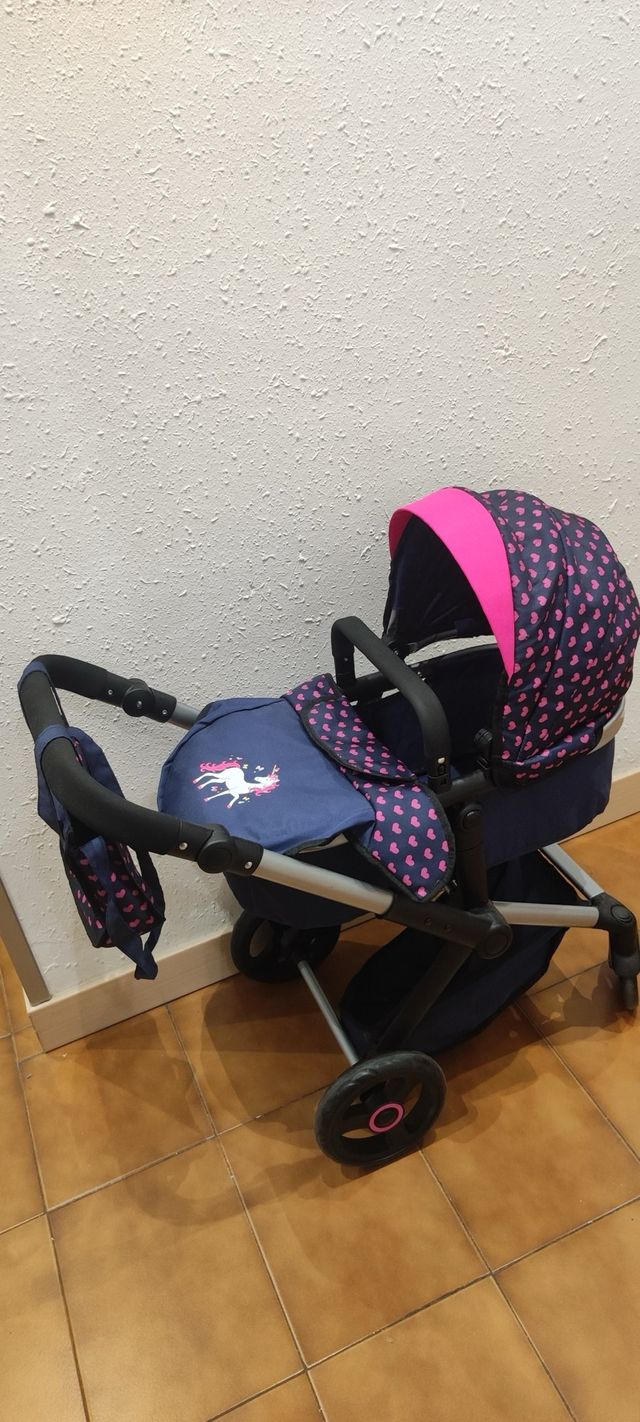 Detalles del productoCochecito de muñecas con un bonito estampado de unicornios en azul y rosa.