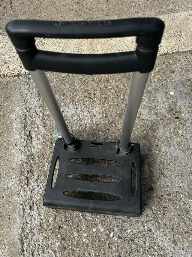 Detalles del productoSe vende carro de transporte ligero y resistente, ideal para llevar una mochila o patines. Es de color negro y plateado, y se encuentra en buen estado.