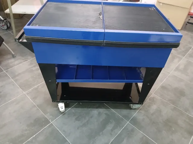 Detalles del productoCarro metálico de taller con estructura robusta y diseño funcional.