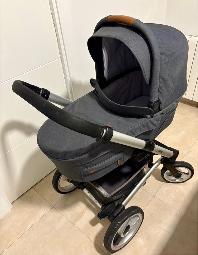 Carro Mutsy Nio en color gris. - Chasis robusto y ligero. - Capazo espacioso. - Ruedas todoterreno. - Manillar ajustable. - 2 sacos de invierno - Silleta de paseo