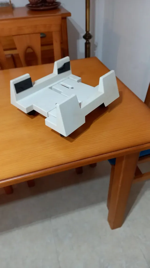 Soporte para ordenador. - Diseño en color blanco. - Base con topes de goma negros.