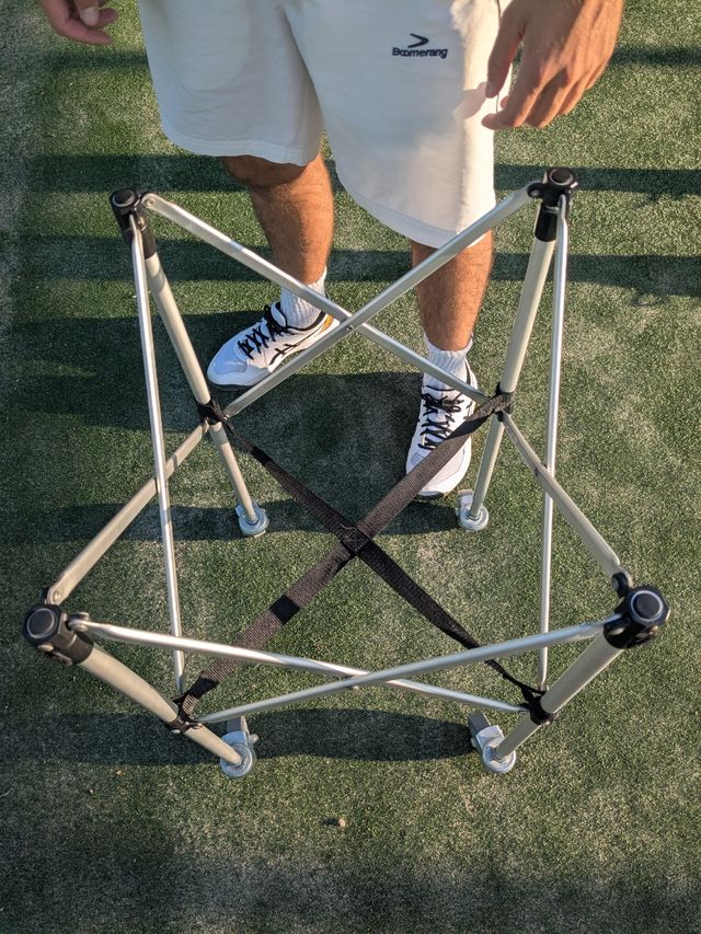 Carro para transportar pelotas de pádel. Ideal para entrenamientos y partidos. Sin cesta. - Estructura metálica. - Ruedas para fácil movilidad. - Cintas de sujeción.