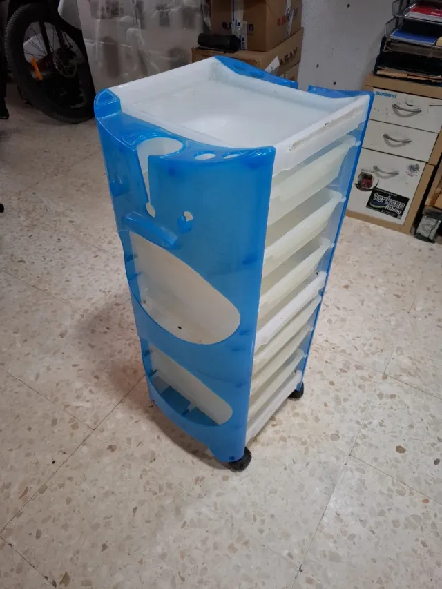 Carrito peluqueria plastico duro con 6 cajones y ruedas,en muy buen estado,medidas 91cm alto,42cm fondo y 36cms ancho.