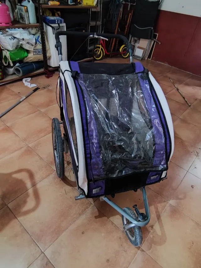 Detalles del productoCarro de paseo para montaña y carro remque para transportar niños en bicicleta.