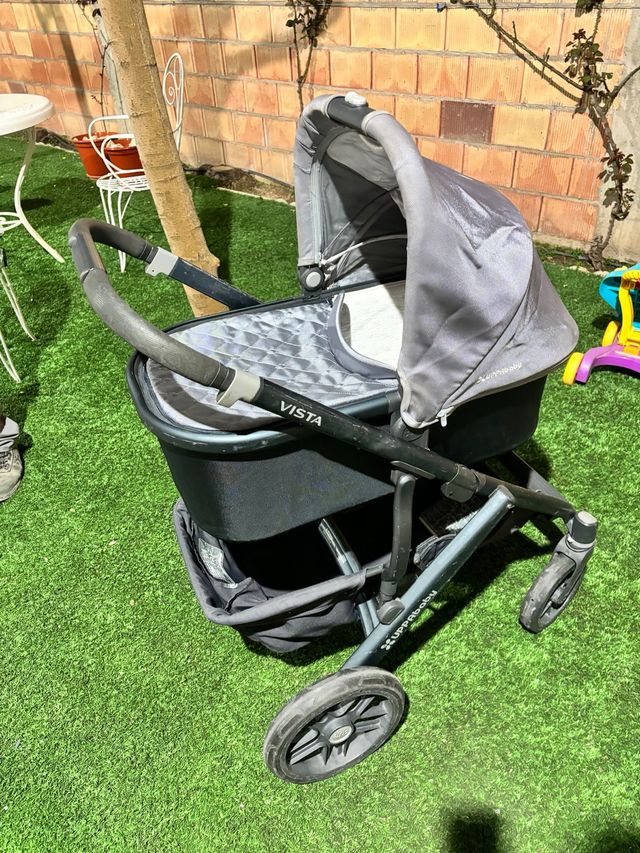 Carro de bebé UPPAbaby modelo Vista. - Color gris. - Capazo incluido. - Ruedas todoterreno. - 2 fundas agua - 2 fundas antimosquitos