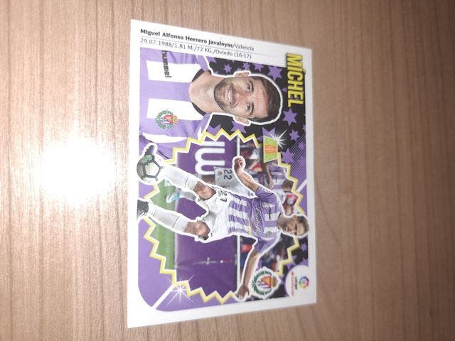 Carta de fútbol del jugador Michel (Miguel Alfonso Herrero Javaloyas). - Equipo: Valencia. - Temporada: 16-17. - Datos: 29.07.1988 / 1.81 M. / 72 KG. - Marca: Hummel.