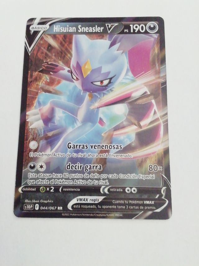 Detalles del productoAquí tienes una carta Pokémon Hisuian Sneasler V, del set Espada y Escudo - Evoluciones Brillantes. Es una carta rara (RR).