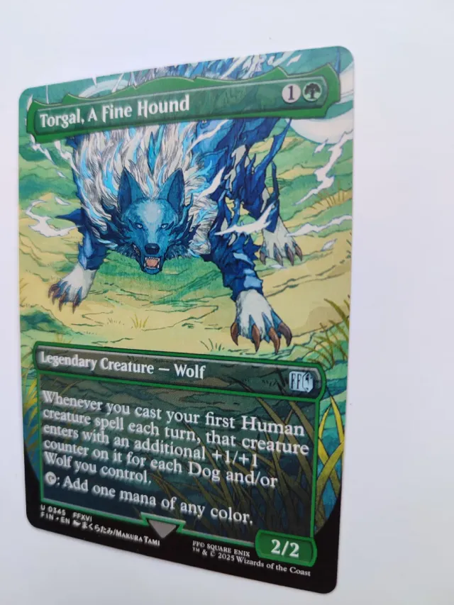 Carta de Magic: The Gathering, Torgal, A Fine Hound. Edición Fullart Borderless.