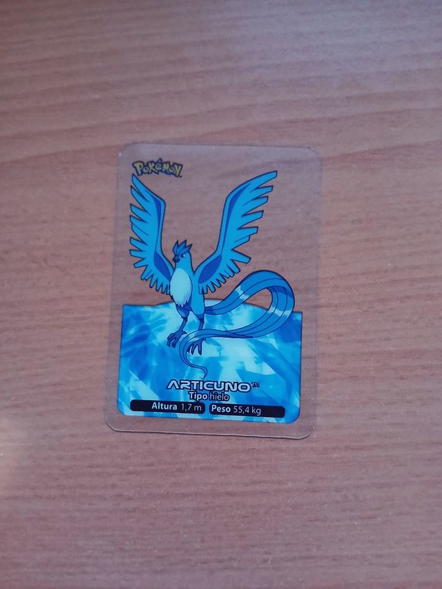 Carta coleccionable de Pokémon con la figura de Articuno. - Tipo: Hielo - Altura: 1,7 m - Peso: 55,4 kg