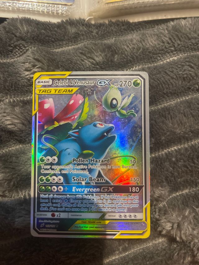 Carta Pokémon de Celebi & Venusaur GX, parte del set Tag Team.
