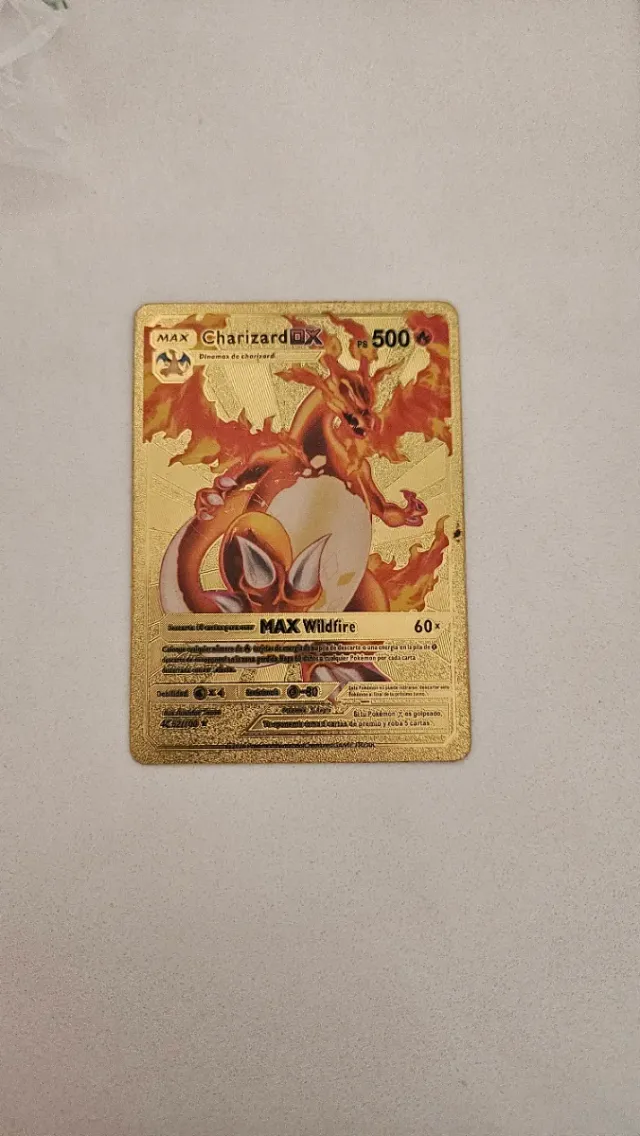 Carta Pokémon Charizard DX MAX con 500 PS. - Ataque MAX Wildfire. - Debilidad x4. - Resistencia -30.