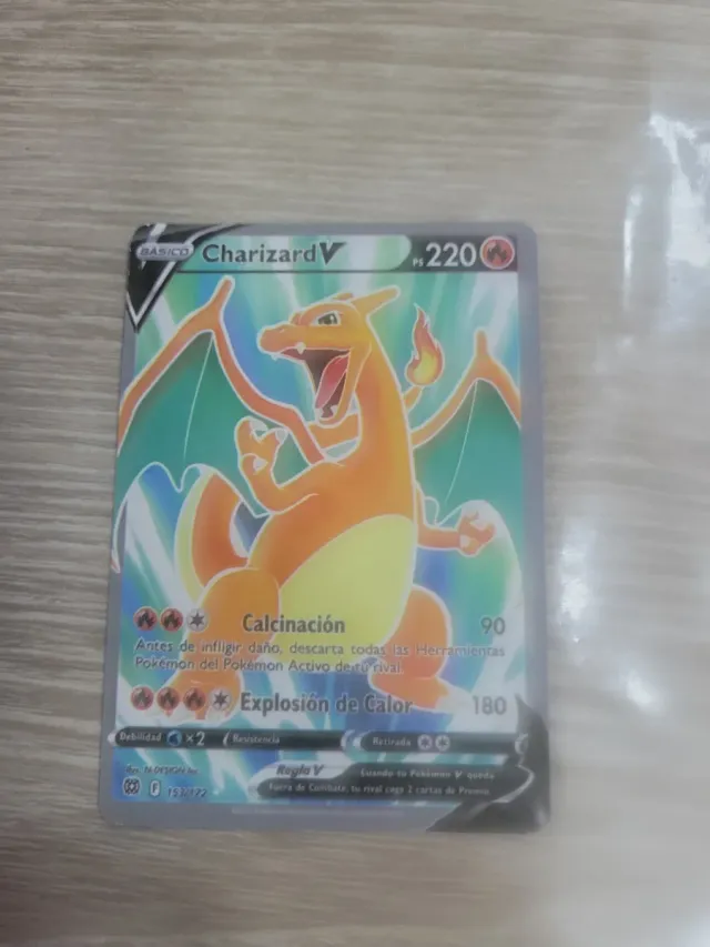 Detalles del productoCarta Pokémon de Charizard V con 220 HP.