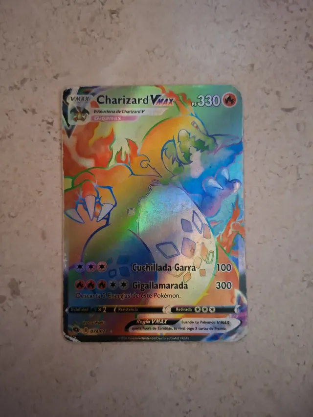 Detalles del productoCarta Pokémon de Charizard VMAX Gigamax.