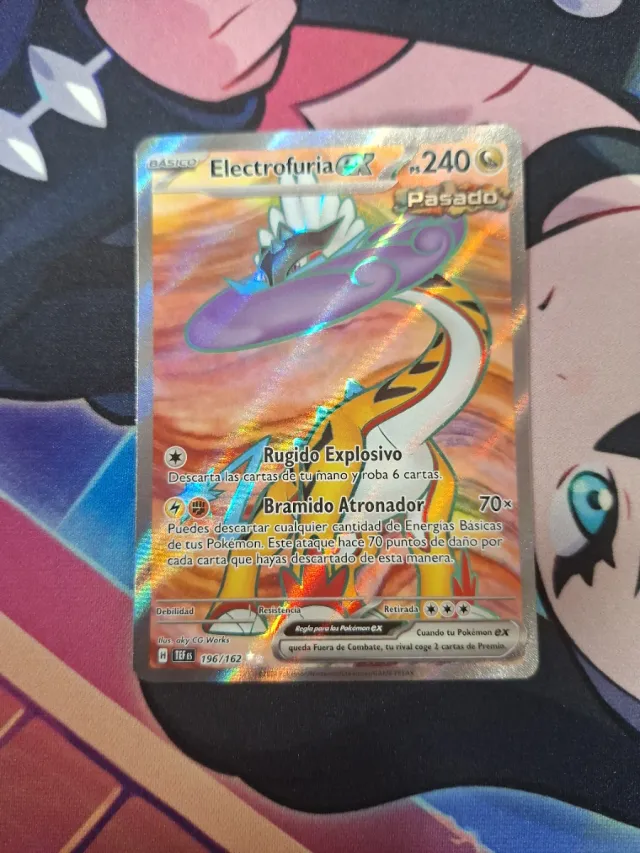 Carta Pokémon de Electrofuria EX con número 196/162. - Tipo: Básico - Ataques: Rugido Explosivo y Bramido Atronador - HP: 240 - Ilustrador: uky CG Works