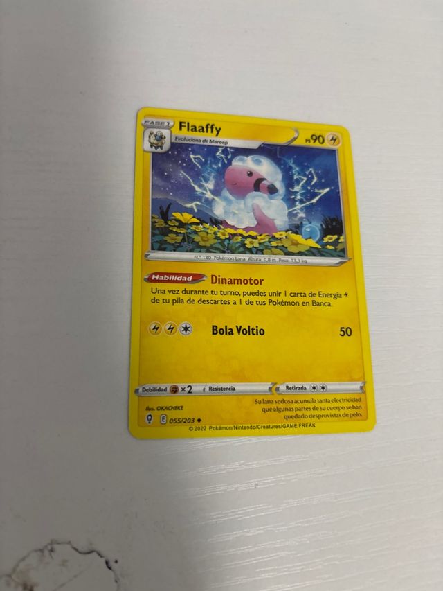 Detalles del productoCarta Pokémon de Flaaffy, evolución de Mareep.