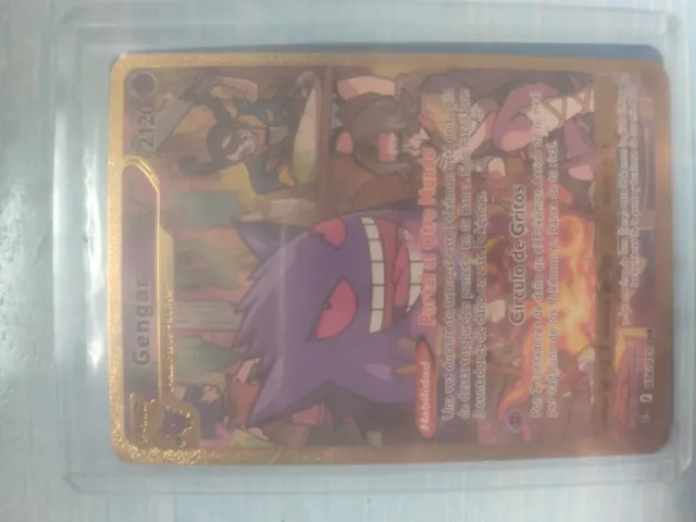 Detalles del productoCarta Pokémon de Gengar con número 2120. Es una carta especial con arte dorado.