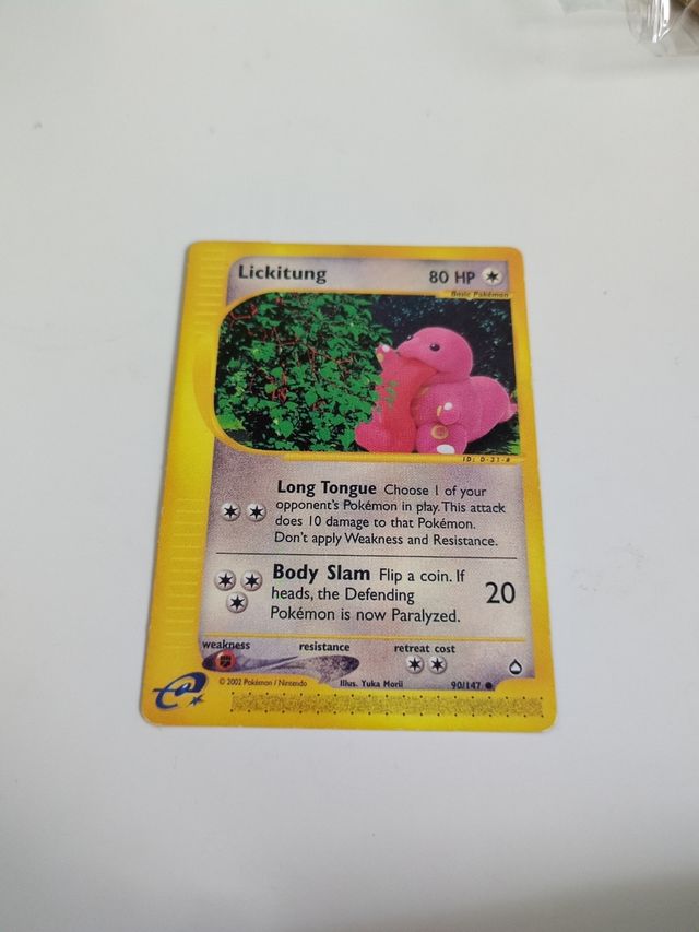 Detalles del productoVendo carta Pokémon Lickitung, del set Expedition Base. La carta está en buen estado.