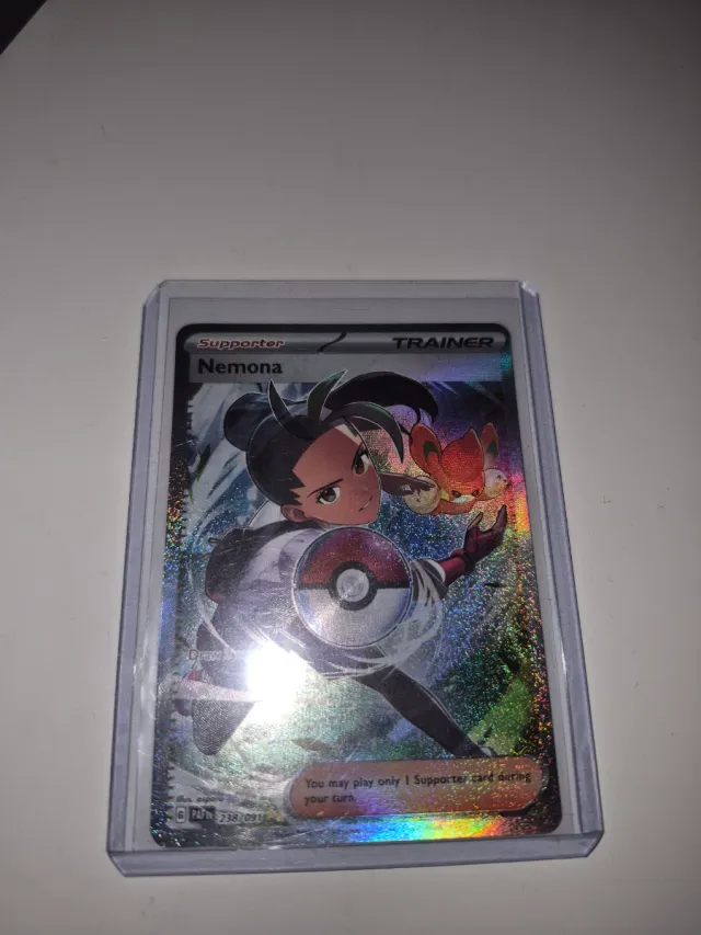 Detalles del productoCarta de Entrenador Nemona de Pokémon.