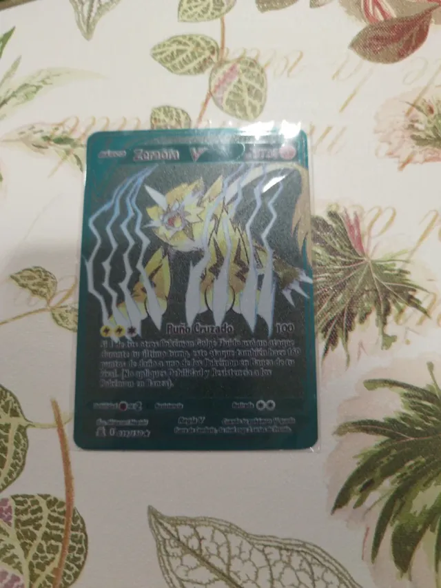 Carta Pokémon Zamazenta V con acabado metálico. - Ataque: Ruño Cruzado - Daño: 100 - Tipo: Metálico