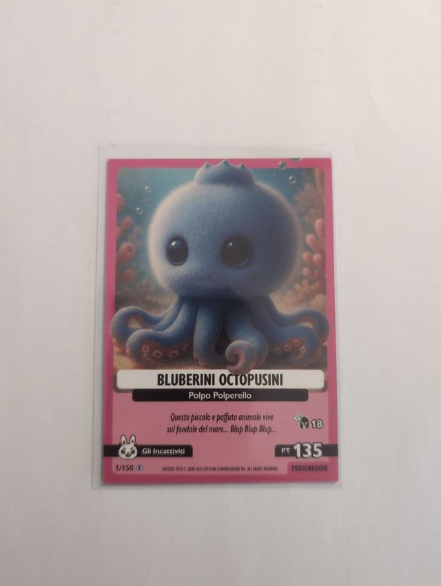 Carta coleccionable de Skifidol, personaje Bluberini Octopusini. Conservada en funda. Se envía en sobre protegido. Envío rápido, al día siguiente hábil.
