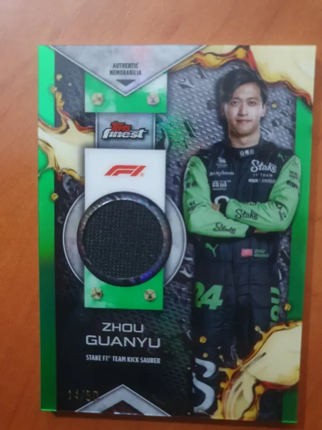 Carta coleccionable de Zhou Guanyu, edición limitada. - Auténtica memorabilia. - Número de serie: 14 de 50. - Equipo: Stake F1 Team Kick Sauber.