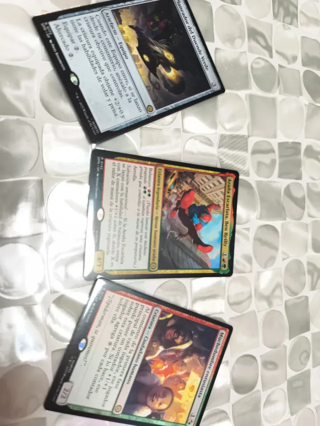 Detalles del productoLote de cartas de Magic: The Gathering del universo Spiderman. Incluye Planeador del Duende Verde, Araña Escarlata, Ben Reilly y Muchedumbre entusiasta.