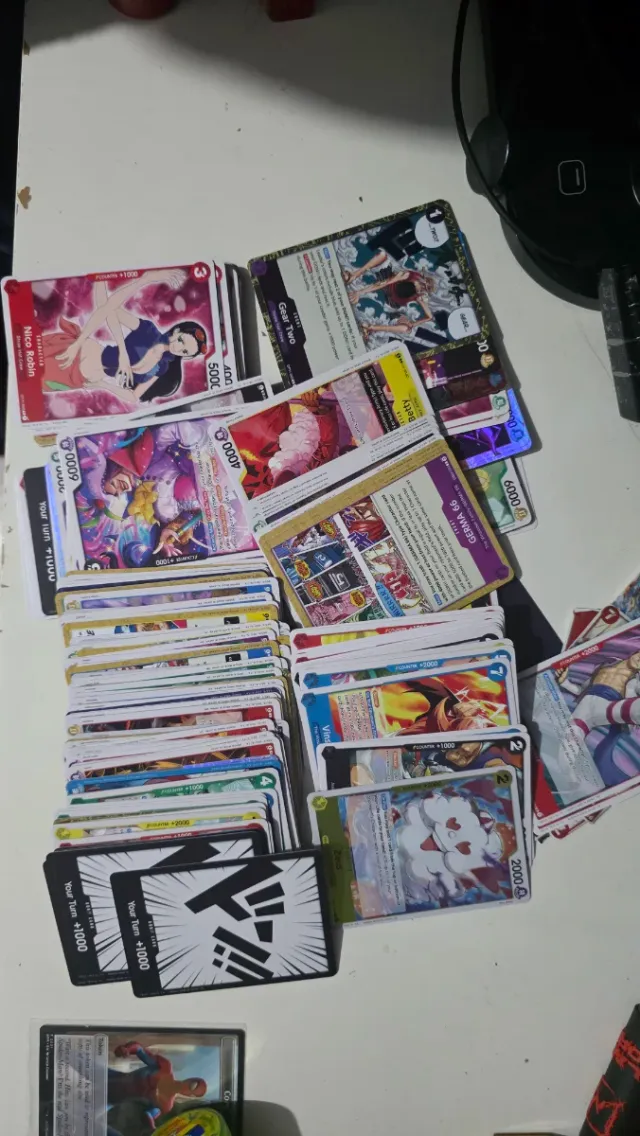 Detalles del productoLote de cartas del juego de cartas coleccionables de One Piece. Incluye una selección variada de cartas.