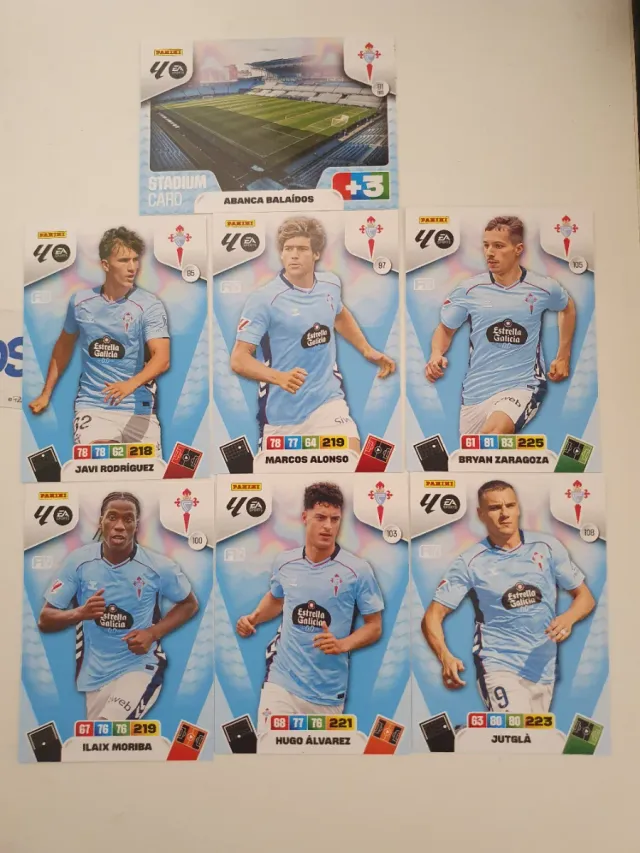 - Cartas de jugadores: Javi Rodríguez, Marcos Alonso, Bryan Zaragoza, Ilaix Moriba, Hugo Álvarez, Jutglà.