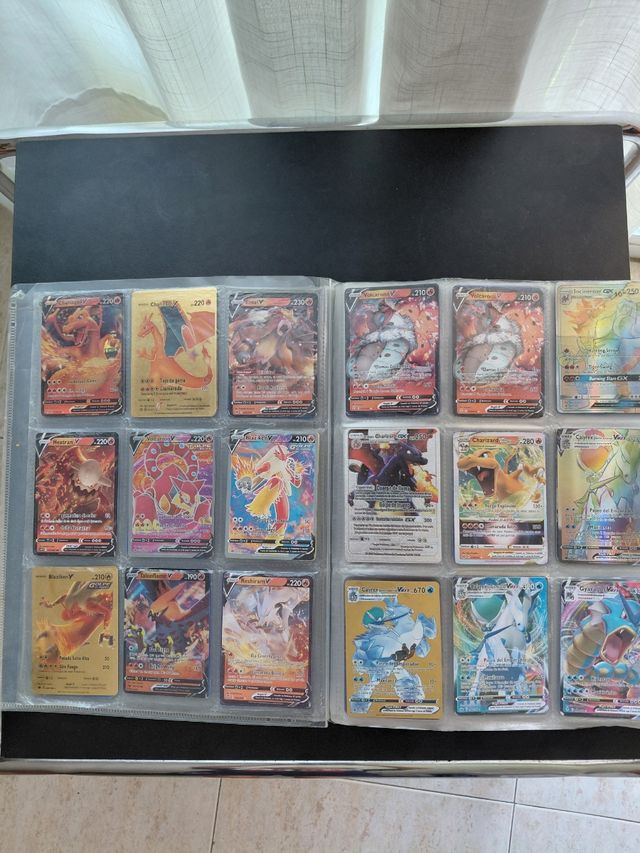 Detalles del productoCartas pokemon V, Vmax, GX, EX, Vastro, normales, energias y Entrenadores. Las cartas están en fundas protectoras.
