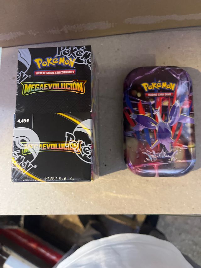 Detalles del productoSe venden cartas Pokémon de la expansión Mega Evolución. Incluye una caja y una lata.