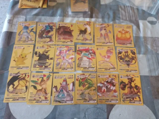 Colección de cartas Pokémon con acabado dorado. Precio unidad 3€ Preguntad por carta alguna está vendida - Cartas V Max. - Diseño brillante y llamativo.