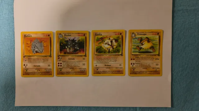 Cartas Pokémon Rhyhorn, Rhydon, Mankey y Primeape
