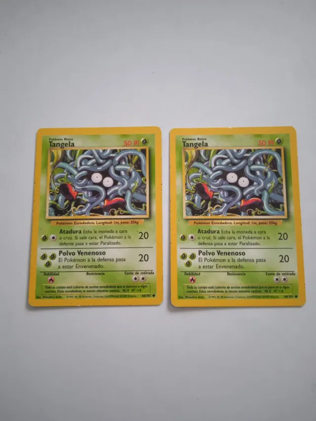 Cartas Pokémon de Tangela a 3€ cada una en los laterales tiene como una especie de pintitas negras no sé lo que sera