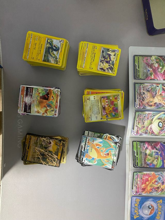 Detalles del productoLote de 600 cartas Pokémon variadas, incluyendo algunas de Charizard y Eelektross.