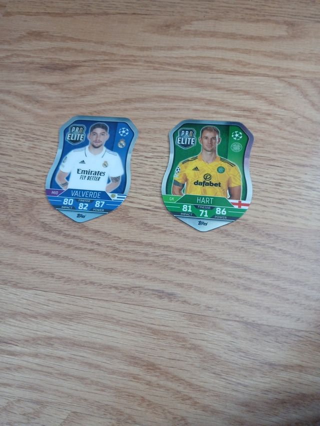 Detalles del productoSe venden dos cartas de fútbol de la colección Topps Pro Elite. Las cartas están en perfecto estado y son de los jugadores Valverde y Hart.
