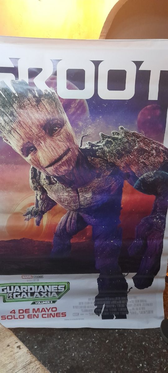 cartel gigante de cine de la película guardianes de la galaxia con un roto en el marco no en la imagen medidas 1'10x1,80m